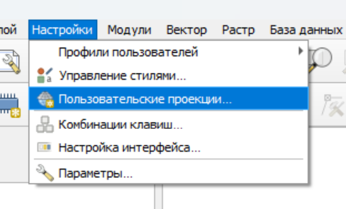 Открыть окно «Пользовательские проекции» во вкладке «Настройки» на верхней панели.