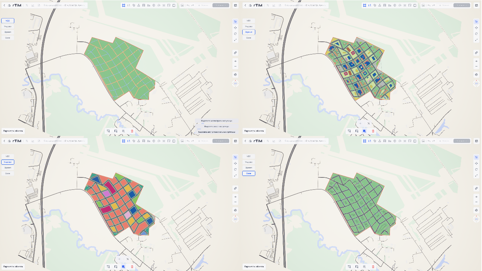 Режим редактирования применяется для четырех отдельных слоев проекта. Их список можно увидеть в левом верхнем углу.