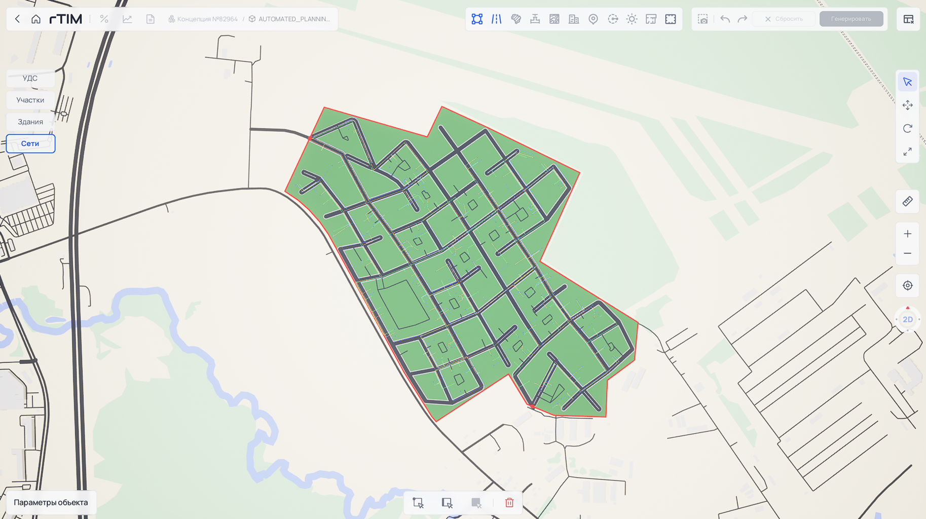Для того чтобы начать редактирование инженерных сетей, необходимо выбрать раздел редактирования «Сети» на панели в левой части экрана.