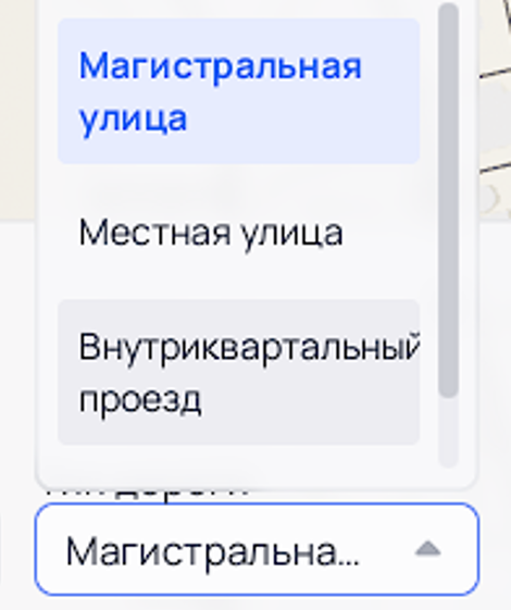 Для изменения типа улицы необходимо раскрыть выпадающий список «Тип дороги» и выбрать интересующий тип.