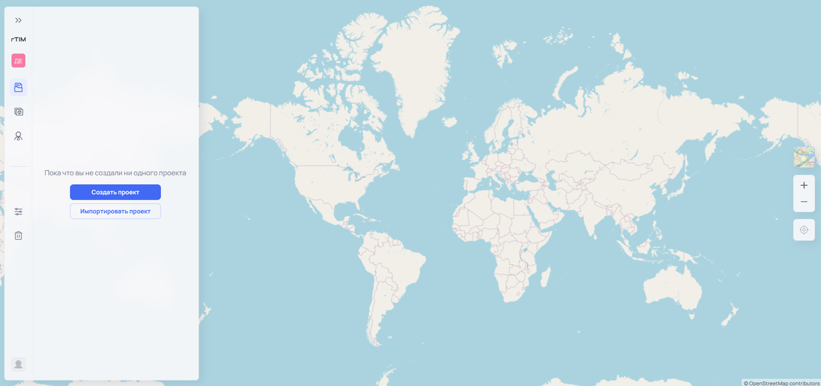 При первом входе в Платформу гТIМ перед Пользователем откроется пустое окно с проектами, так как проекты еще не были созданы.